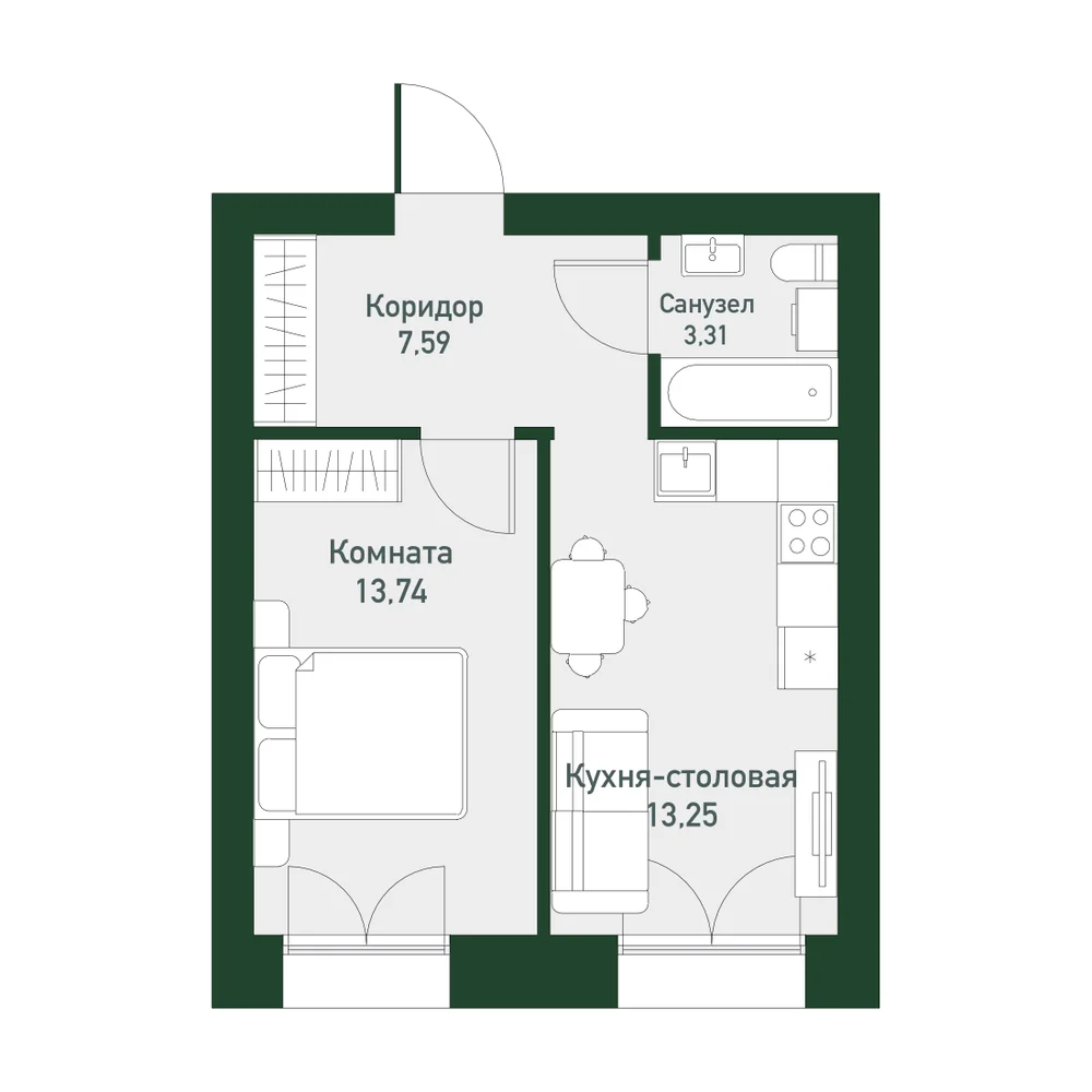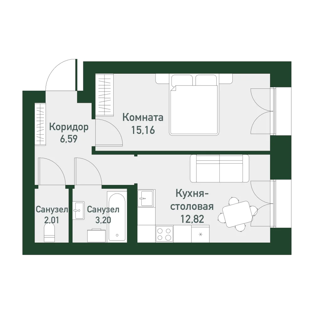 1-комнатная  37.4 м2